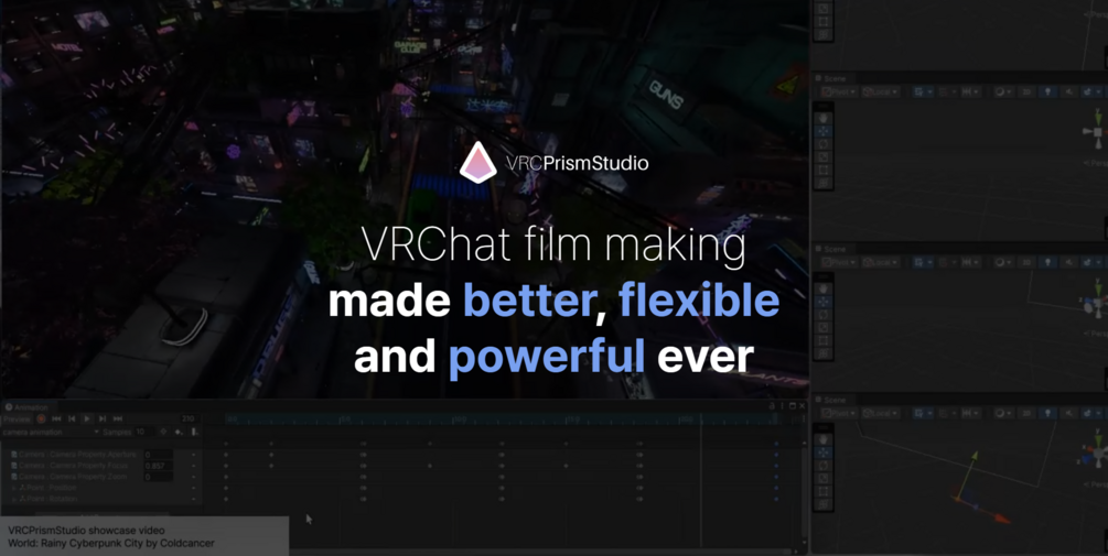 - Ability to use Cinemachine, Unity Animation system, and C# addon (script) on VRCPrismStudio Unity Project
